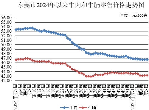 第8周,所監(jiān)測的牛肉農(nóng)貿市場零售均價為每500克46.68元,與上周持平。牛腩農(nóng)貿市場零售均價為每500克43.14元,與上周持平。雞肉農(nóng)貿市場零售均價為每500克16.77元,較上周下降1.87%。