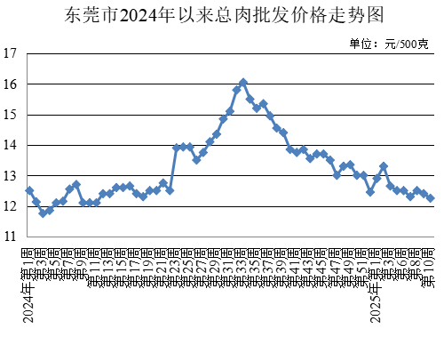 第10周,生豬出場價格為每公斤15.40元,較上周下降3.75%。總?cè)馀l(fā)均價為每500克12.25元,較上周下降1.21%。